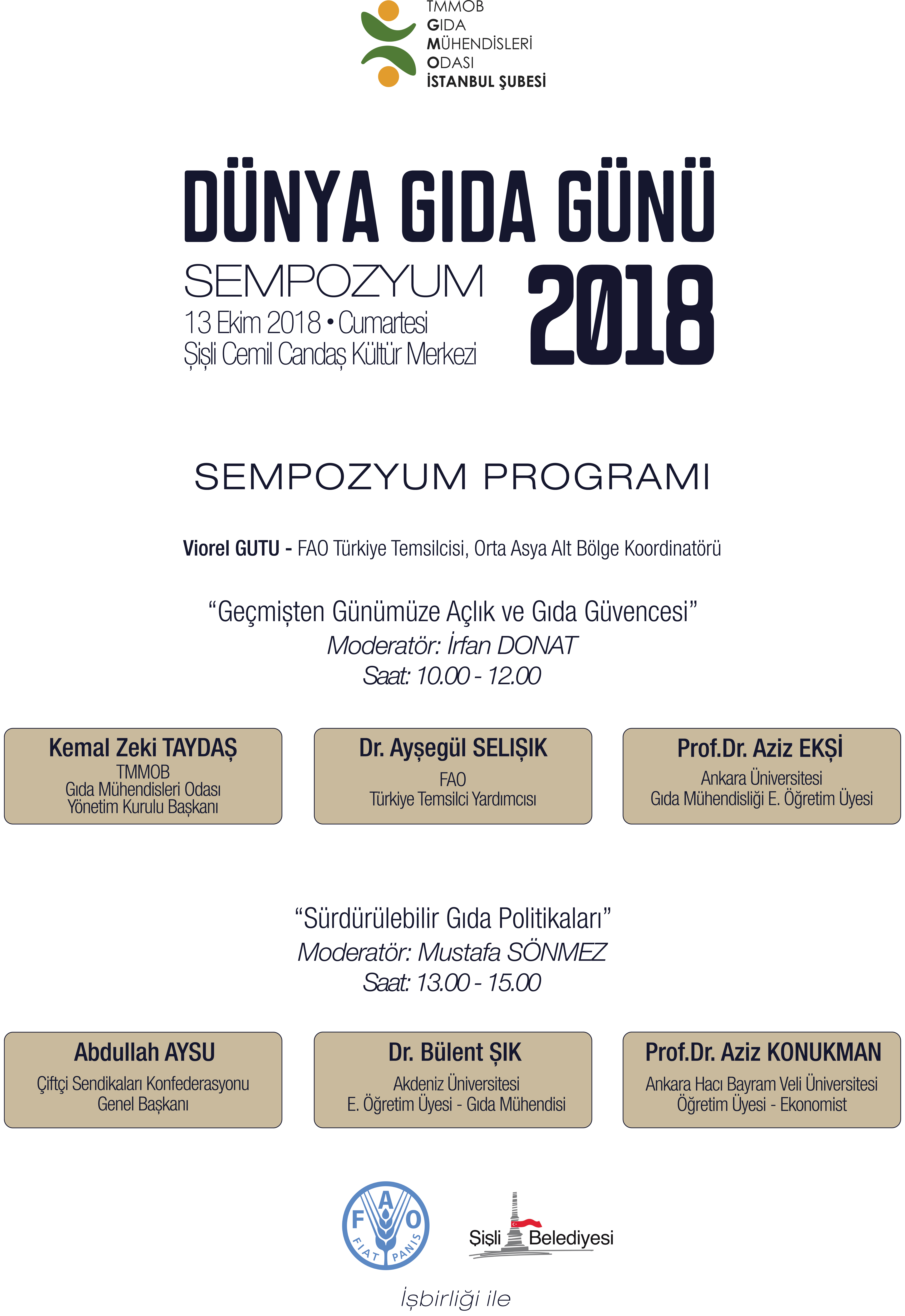"16 Ekim Dünya Gıda Günü" kapsamında, TMMOB Gıda Mühendisleri Odası İstanbul Şubesi tarafından düzenlenen ve Şubemizin de destekleyicileri arasında olduğu Gıda Günü Sempozyumu'nun ikinci ayağı 20 Ekim 2018 Cumartesi günü, Kadıköy Barış Manço Kültür Merkezi'nde gerçekleşecektir.