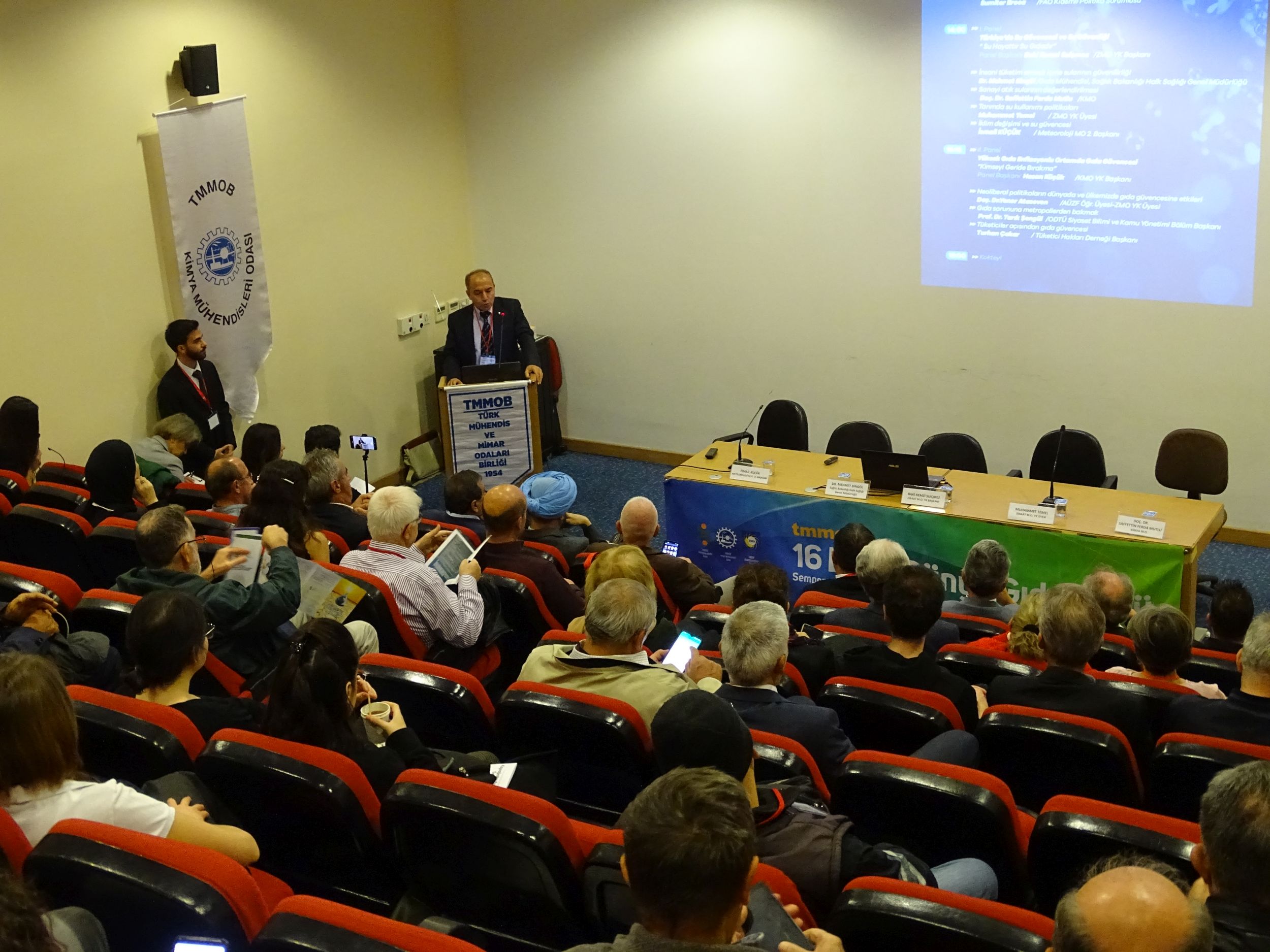 TMMOB`ye bağlı Odaların, sivil toplum örgütlerinin temsilcilerinin, akademisyenlerin, meslektaşlarımızın üyelerimizin ve öğrenci üyelerin katıldığı Sempozyumda, Ziraat Mühendisleri Odası Yönetim Kurulu Başkanı Baki Remzi Suiçmez`in yönettiği "Türkiyede Su Güvencesi ve Su Güvenliği "Su Hayattır"" Panelde , Sağlık Bakanlığı Halk Sağlığı Genel Müdürlüğünden Dr. Mehmet Bingöl , "İnsani Tüketim Amaçlı İçme Sularının Güvenilirliği", Odamız adına Doç. Dr. Saffettin Ferda Mutlu "Sanayi Atık Sularının Değerlendirilmesi", Ziraat Mühendisleri Odası Y.K. Üyesi Muhammet Temel "Tarımda Su Kullanımı Politikaları", Meteoroloji Mühendisleri Odası 2. Başkanı İsmail Küçük "İklim Değişimi ve Su Güvencesi" konulu sunumları ile konuşmacı olarak yer aldılar.