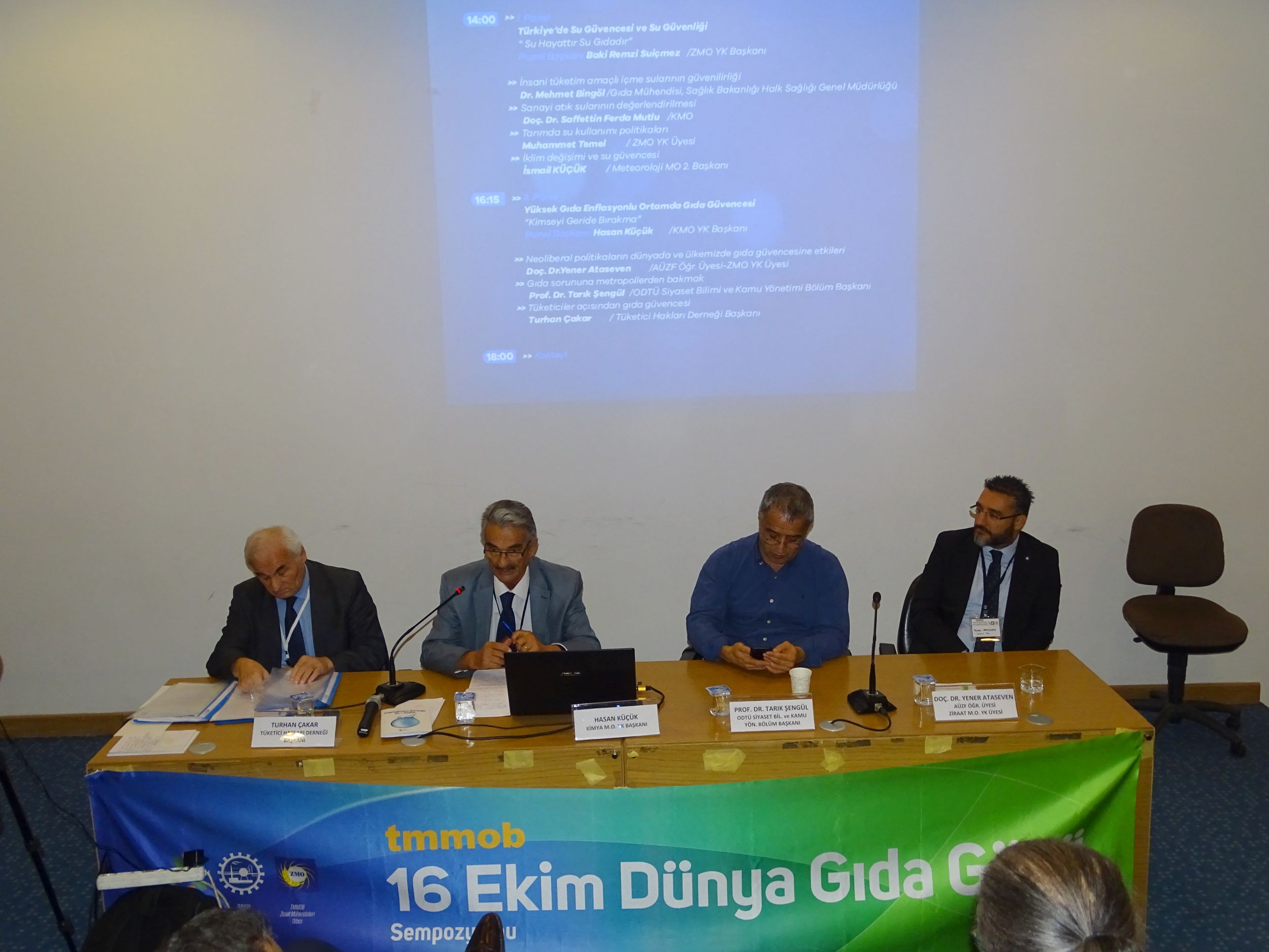 Odamız Yönetim Kurulu Başkanı Hasan Küçük`ün yönettiği "Yüksek Gıda Enflasyonlu Ortamda Gıda Güvencesi - Kimseyi Geride Brakma" başlıklı Panelde, Ankara Üni. Ziraat Fakültesi Öğr. Üyesi - Ziraat Mühendisleri Odası YK Üyesi Doç. Dr. Yener Ataseven "Neoliberal Politikaların Dünya da ve ülkemizde Gıda Güvencesine Etkileri", ODTÜ Siyaset Bilimi ve Kamu Yönetimi Bölüm Başkanı Prof. Dr. Tarık Şengül "Gıda Sorununa Metropollerden Bakmak", Tüketici Hakları Derneği Başkanı Turhan Çakar "Tüketiciler Açısından Gıda Güvencesi" konulu sunumları ile konuşmacı olarak yer aldılar.