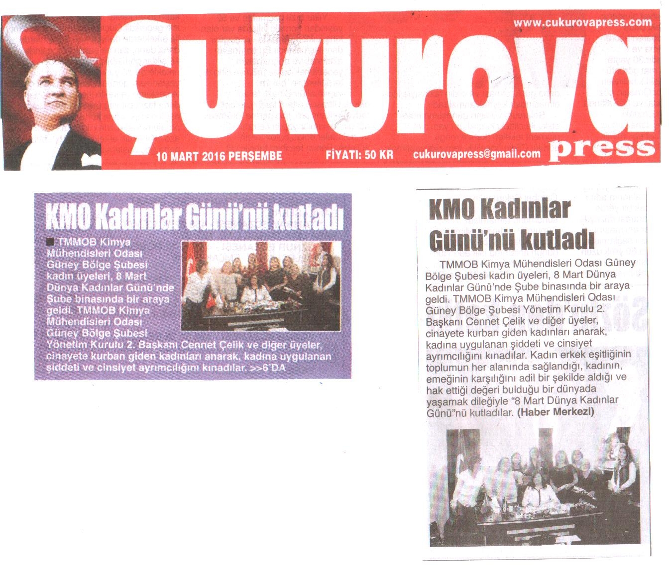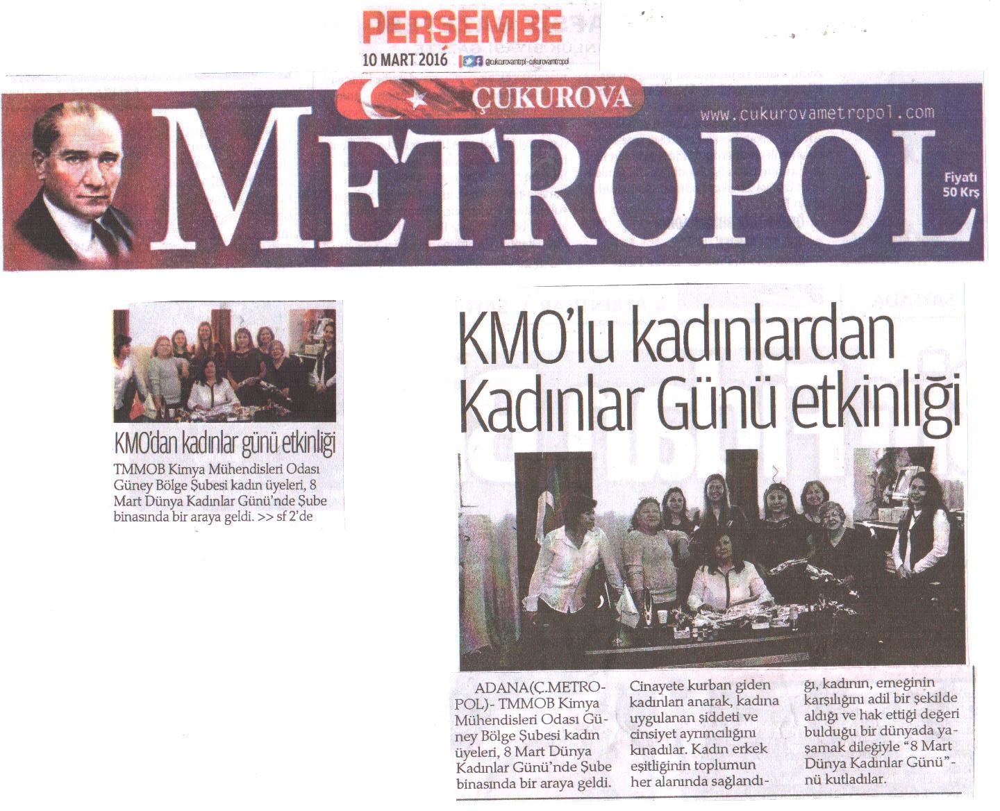 TMMOB Kimya Mühendisleri Odası Güney Bölge Şubesi kadın üyeleri, 8 Mart Dünya Kadınlar Günü'nde Şube binasında bir araya geldi.