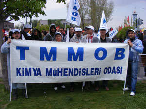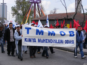 Ankarada Sıhhıye Meydanında yapılan miting için Tren Garında buluşuldu. TMMOB ana pankartının arkasında açılan Oda pankartlarının arkasında binlerce mimar, mühendis ve şehir plancısı alana yürüdü.