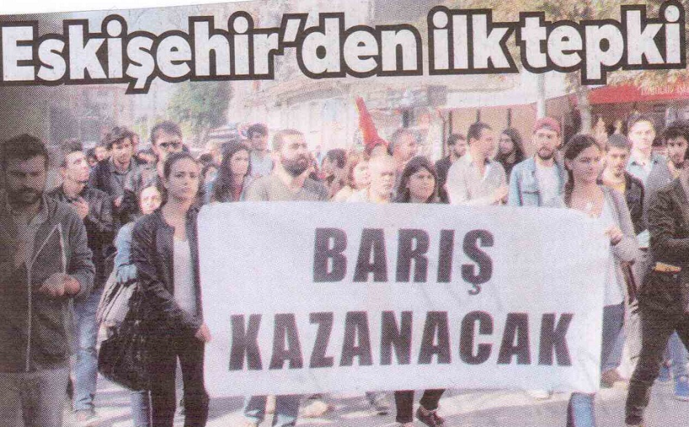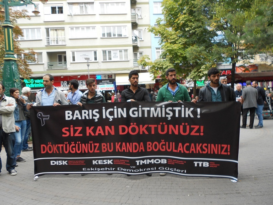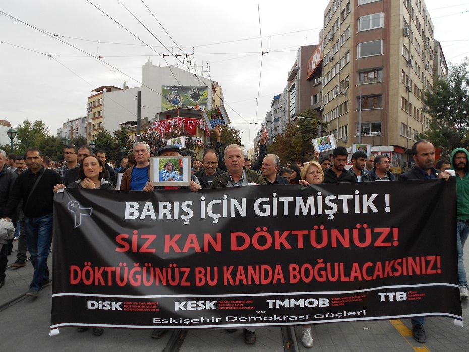 10 EKİM 2015 CUMARTESİ GÜNÜ SIHHİYE MEYDANINDA YAPILACAK OLAN EMEK , BARIŞ VE DEMOKRASİ MİTİNGİNİN KANA BULANMASINA ESKİŞEHİR TEPKİSİZ KALMADI.