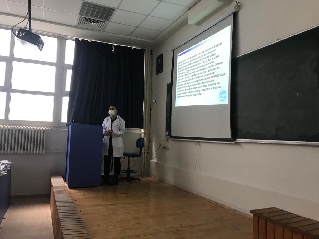 Öğrenci Üye Komisyon Başkanı Özge BAŞLIOĞLU tarafından Oda tanıtım sunumu yapılmış ve her yıl geleneksel hale getirdiğimiz 1. sınıf öğrencilerine hediye ettiğimiz Laboratuar önlük ve gözlük dağıtımımız değerli öğretmenlerimizin katılımıyla kimya mühendisliği bölümünde gerçekleştirilmiştir.