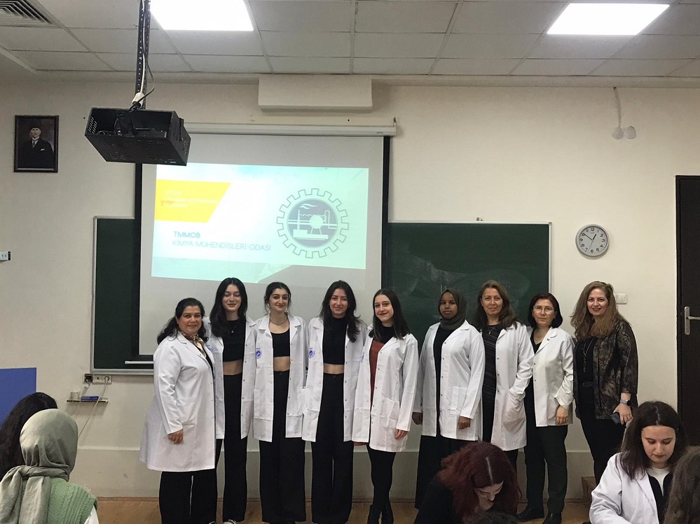 Öğrenci Üye Komisyon Başkanı EDA KARAOĞLU tarafından Oda tanıtım sunumu yapılmış ve her yıl geleneksel hale getirdiğimiz 1. sınıf öğrencilerine hediye ettiğimiz Laboratuar önlük ve gözlük dağıtımımız değerli öğretmenlerimizin katılımıyla kimya mühendisliği bölümünde gerçekleştirilmiştir.
