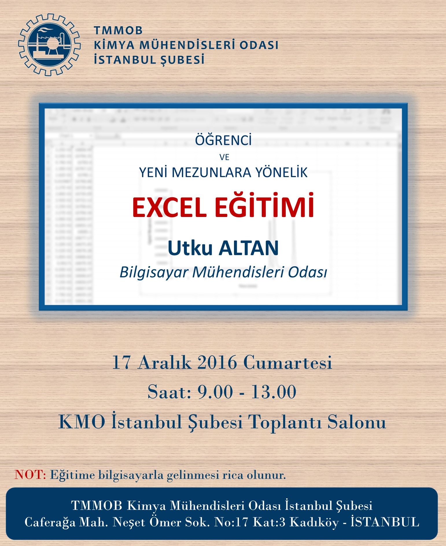 17 Aralık Cumartesi günü Şubemizde öğrenci üyelerimiz ve yeni mezun Oda üyelerine yönelik ücretsiz Excel programı eğitimi düzenlecektir.