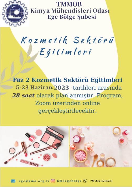 05-23 HAZİRAN 2023 tarihlerinde FAZ 2 KOZMETİK SEKTÖRÜ EĞİTİMLERİ zoom programı üzerinden düzenlenecektir. Eğitimler ile ilgili detaylı bilgi aşağıda yer almakta olup eğitim başvuru formunu ekte bulabilirsiniz. Eğitime katılmak isteyenlerin, başvuru formunu doldurarak 30 MAYIS 2023 tarihine kadar ege@kmo.org.tr e-posta adresine göndermelerini rica ederiz.