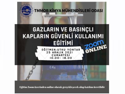 25 Aralık 2021 tarihinde GAZLARIN VE BASINÇLI KAPLARIN GÜVENLİ KULLANIMI EĞİTİMİ online olarak zoom programı üzerinde düzenlenecektir. Eğitim ile ilgili detaylı bilgi aşağıda yer almakta olup eğitim başvuru formunu ekte dosyalar kısmında bulabilirsiniz. Eğitime katılmak isteyen katılımcıların ekte yer alan başvuru formunu doldurarak ege@kmo.org.tr adresine göndermelerini rica ederiz.
