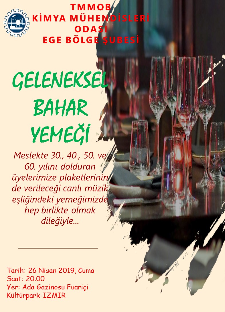 Meslekte 30., 40., 50. ve 60. yılını dolduran üyelerimize plaketlerinin de verileceği canlı müzik eşliğindeki yemeğimizde hep birlikte olmak dileğiyle...