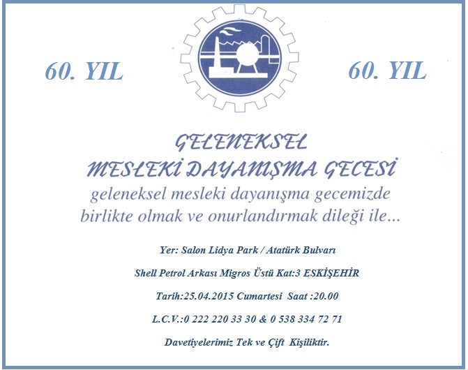 Ø Davetiyeleri ve Mesleki Dayanışma Gecemizin programı hakkında bilgiyi Bölge Temsilciliğimizden temin edilebilirsiniz.