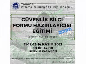 Odamız tarafından 11-12-13-14 Kasım 2021 tarihlerinde GÜVENLİK BİLGİ FORMU HAZIRLAYICISI ONLİNE EĞİTİMİ düzenlenecektir. Zoom programı üzerinden online olarak yapılacak eğitim ile ilgili detaylı bilgi aşağıda yer almaktadır. Eğitime katılmak isteyenlerin, ekte yer alan başvuru formunu doldurarak gabtm@kmo.org.tr e-posta adresine göndermeleri rica olunur.