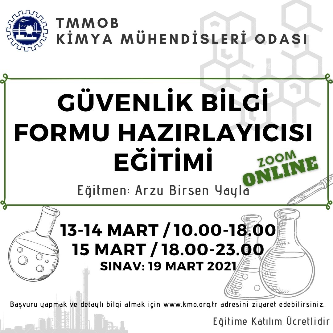 13-14-15 Mart 2021 tarihlerinde Güvenlik Bilgi Formu Hazırlayıcısı Eğitimi Zoom programı üzerinden online olarak düzenlenecektir. Eğitim ile ilgili detaylı bilgi aşağıda yer almakta olup eğitim başvuru formunu dosyalar kısmında bulabilirsiniz.