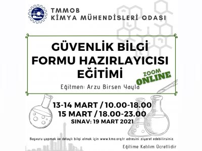 13-14-15 Mart 2021 tarihlerinde Güvenlik Bilgi Formu Hazırlayıcısı Eğitimi Zoom programı üzerinden online olarak düzenlenecektir. Eğitim ile ilgili detaylı bilgi aşağıda yer almakta olup eğitim başvuru formunu dosyalar kısmında bulabilirsiniz.