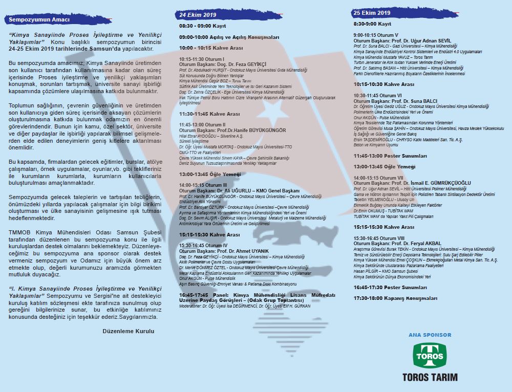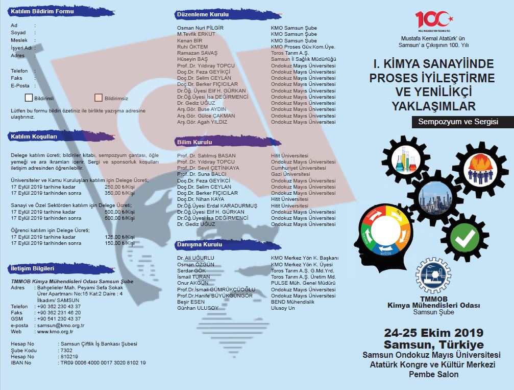 Samsun Şubemiz tarafından düzenlenecek olan I. Kimya Sanayiinde Proses İyileştirme ve Yenilikçi Yaklaşımlar Sempozyumu 24-25 Ekim tarihlerinde Samsun`da düzenlenecektir.