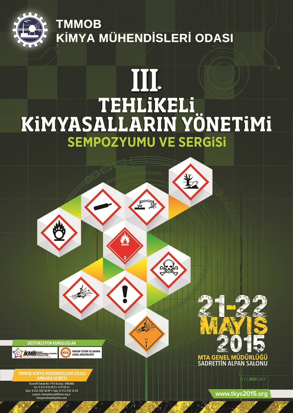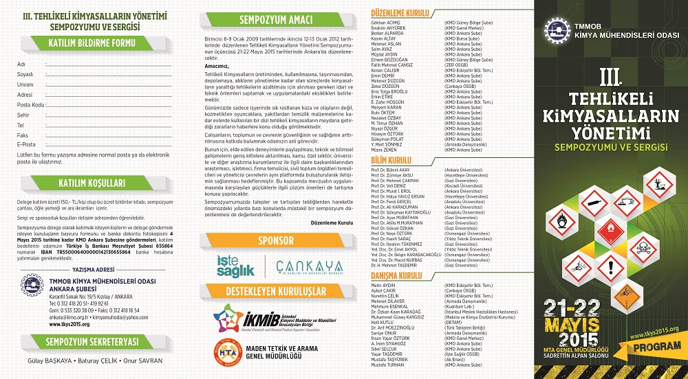 21-22 Mayıs 2015 tarihlerinde MTA Genel Müdürlüğü Sadrettin Alpan Salonunda düzenlenecek olan III. Tehlikeli Kimyasalların Yönetimi Sempozyumu ve Sergisi programına ulaşabilirsiniz.