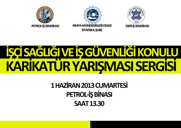 Uzun zamandır çalışması yürütülmekte olan, Petrol-İş Sendikası, Deri-İş Sendikası ve Kimya Mühendisleri Odası İstanbul Şubesi tarafından ortaklaşa düzenlenen "İşçi Sağlığı ve İş Güvenliği" konulu karikatür yarışması sonuçları 1 Haziran 2013 tarihinde saat 13.30da Petrol-İş Sendikası Genel Merkezinde düzenlenecek ödül töreninde ilan edilecektir. Yarışmaya katılan çok sayıda eser arasından seçilen eserlerden oluşan sergi, kokteyl ile devam edecektir.