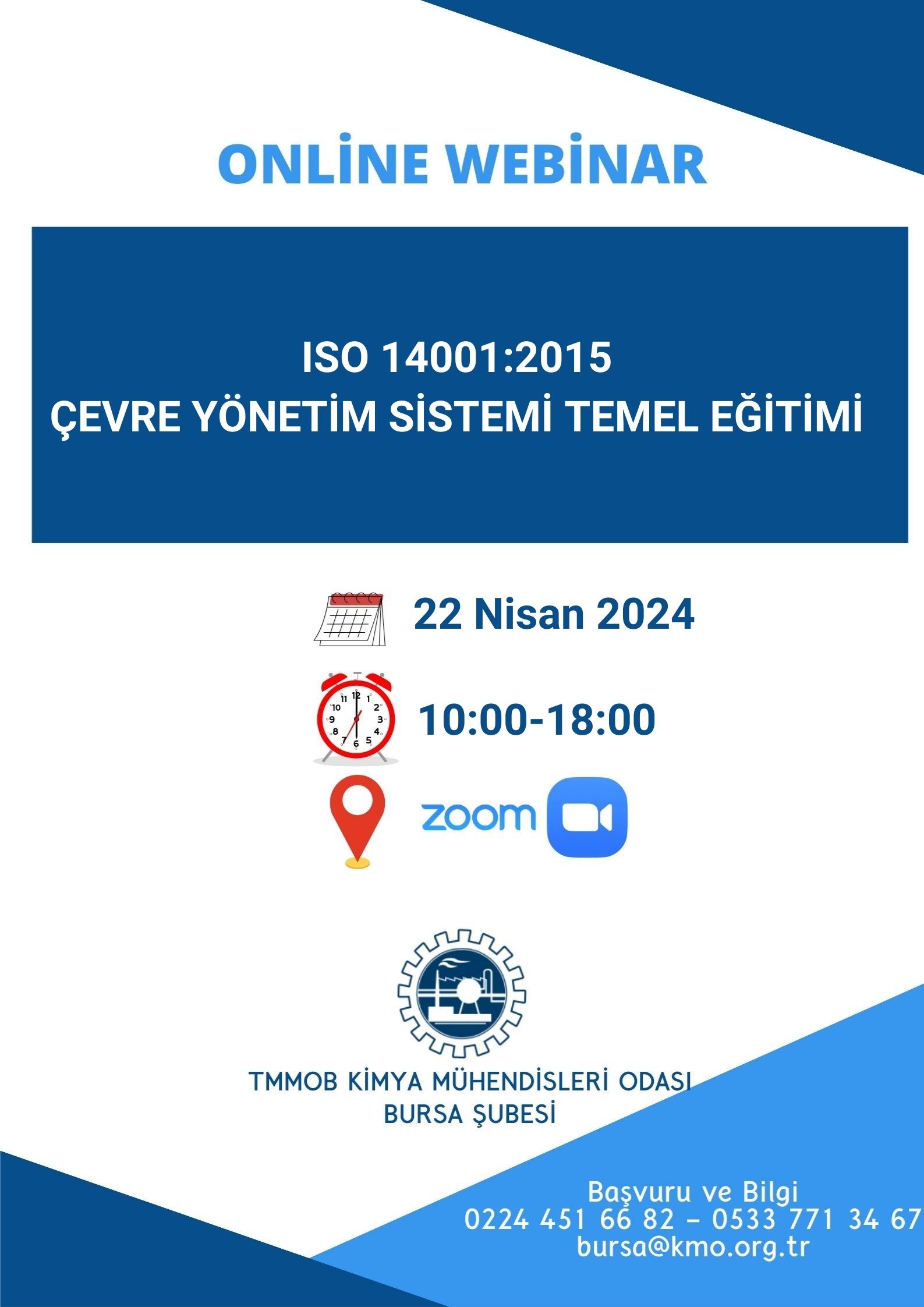 Odamız tarafından, 22 Nisan 2024 tarihinde ISO 14001:2015 Çevre Yönetim Sistemi Temel Eğitimi online olarak zoom programı üzerinde düzenlenecektir. Eğitim ile ilgili detaylı bilgi aşağıda yer almakta olup eğitime katılmak isteyenlerin başvuru formunu doldurarak 19 Nisan 2024 tarihine kadar bursa@kmo.org.tr e-mail adresine göndermelerini rica ederiz.
