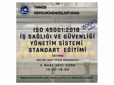 5 Mart 2021 Cuma tarihinde ISO 45001 :2018 İş Sağlığı ve Güvenliği Yönetim Sistemi Standart Eğitimi online olarak zoom programı üzerinde düzenlenecektir. Eğitim ile ilgili detaylı bilgi aşağıda yer almakta olup eğitim başvuru formunu ekte dosyalar kısmında bulabilirsiniz. Eğitime katılmak isteyen üyelerimizin ekte yer alan başvuru formunu doldurarak gabtm@kmo.org.tr e-mail adresine göndermelerini rica ederiz.