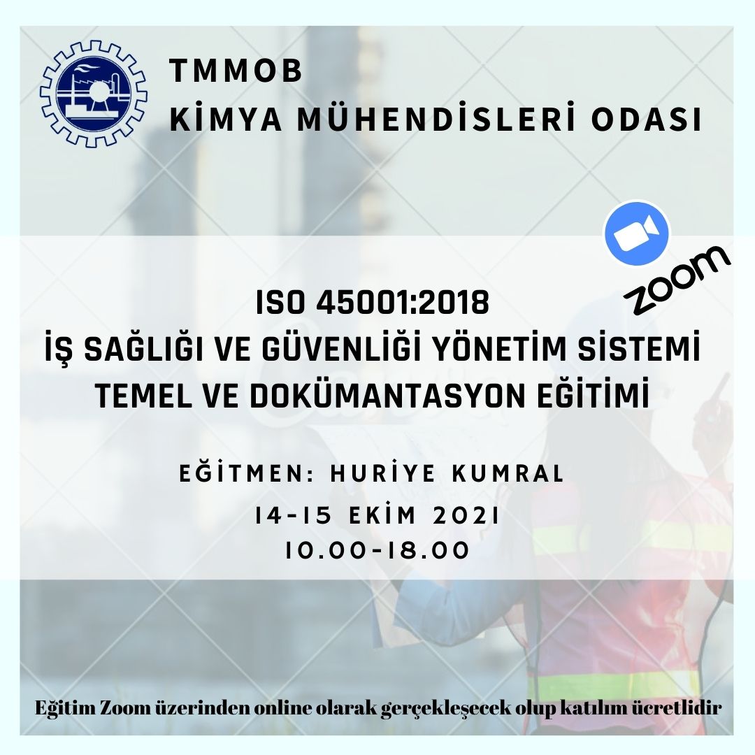14-15 Ekim 2021 tarihinde ISO 45001:2018 İş Sağlığı ve Güvenliği Yönetim Sistemi Temel ve Dökümantasyon Eğitimi online olarak zoom programı üzerinde düzenlenecektir. Eğitim ile ilgili detaylı bilgi aşağıda yer almakta olup eğitim başvuru formunu ekte dosyalar kısmında bulabilirsiniz.