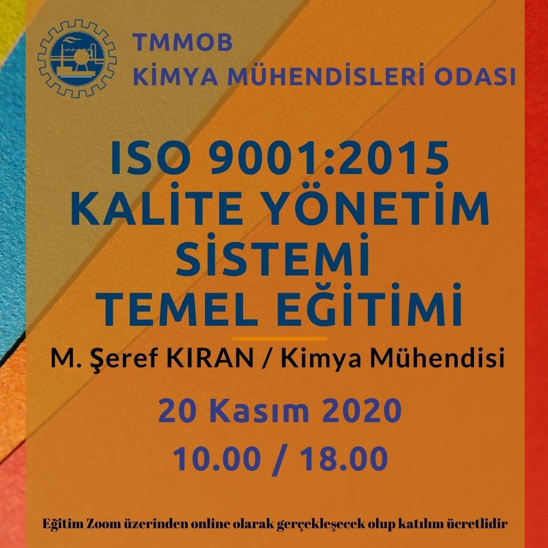 20 Kasım 2020 tarihinde ISO 9001:2015 KALİTE YÖNETİM SİSTEMİ TEMEL EĞİTİMİ online olarak zoom programı üzerinde düzenlenecektir. Eğitim ile ilgili detaylı bilgi aşağıda yer almakta olup eğitim başvuru formunu ekte dosyalar kısmında bulabilirsiniz.