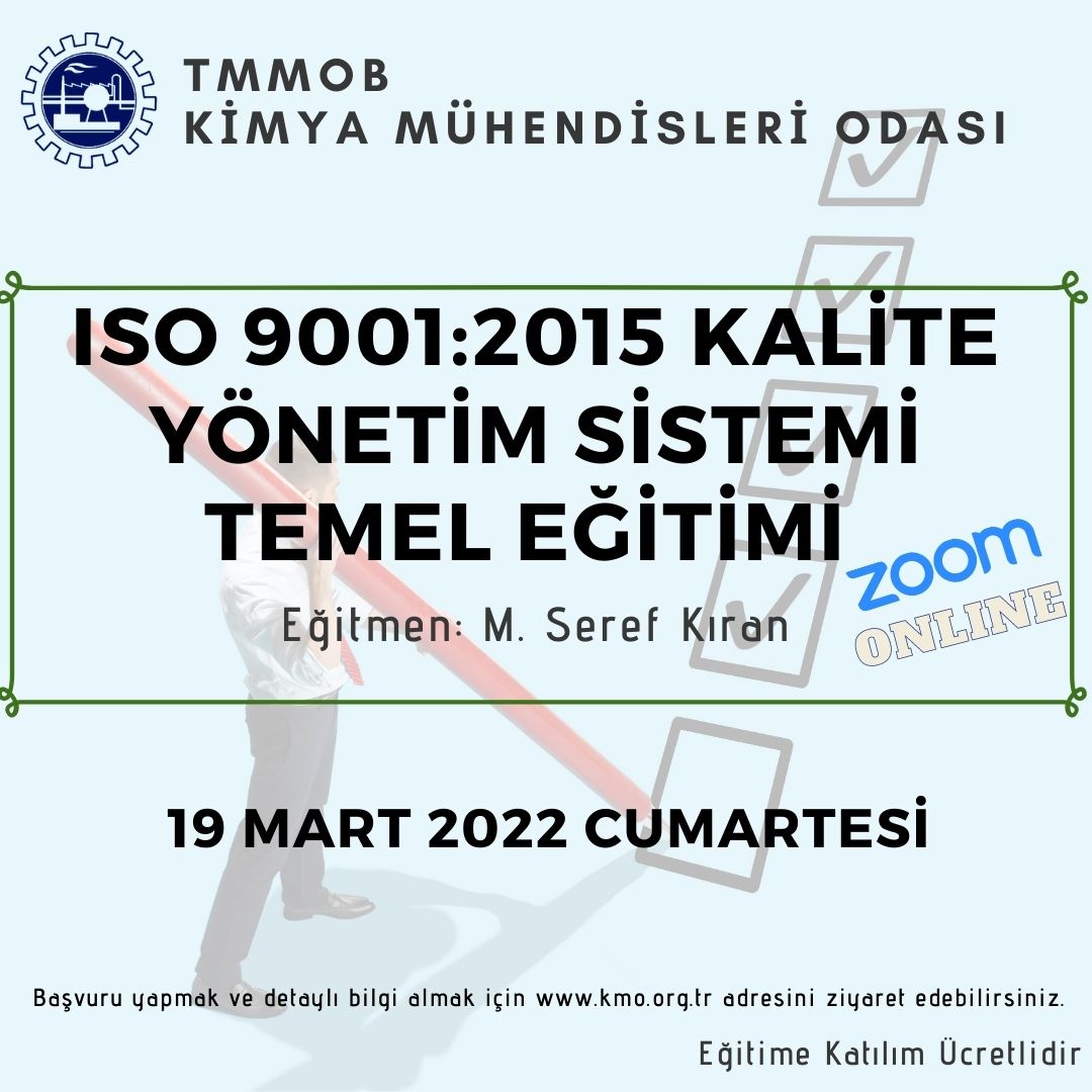ISO 9001:2015 KALİTE YÖNETİM SİSTEMİ TEMEL EĞİTİMİ (ONLİNE)-19 MART 2022