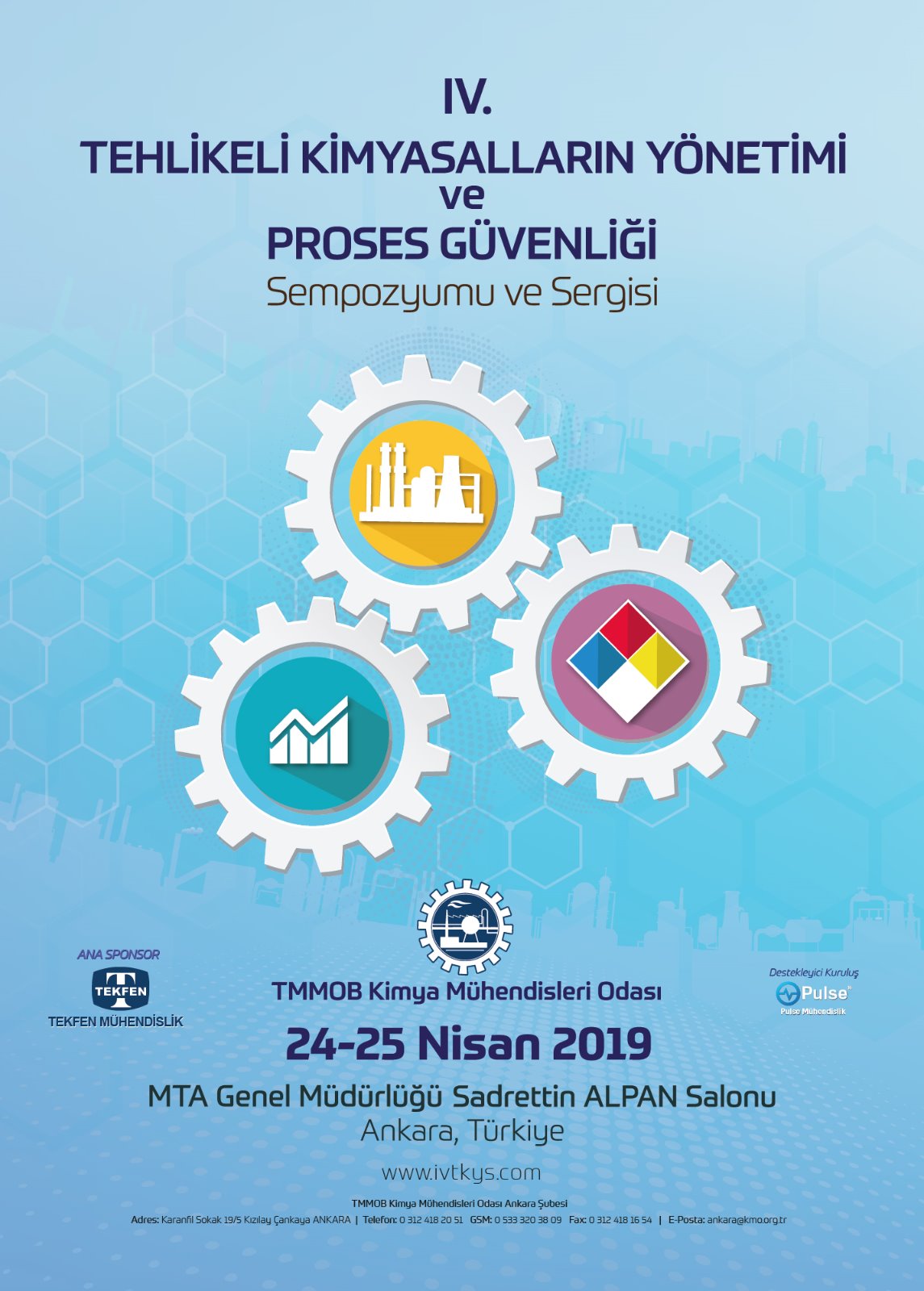 24-25 Nisan 2019 tarihlerinde TMMOB Kimya Mühendisleri Odası tarafından MTA Genel Müdürlüğü Sadrettin ALPAN Salonu`nda düzenlenecek IV.Tehlikeli Kimyasalların Yönetimi ve Proses Güvenliği Sempozyumu ve Sergisi`nin programını içeren 2. Duyurusu yayınlanmıştır. Sempozyum web sayfasından ayrıntılı bilgiye ulaşabilir ve online kayıt yaptırabilirsiniz. Sempozyum web sayfası için tıklayınız.