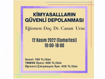 12 Kasım 2022 tarihinde KİMYASALLARIN GÜVENLİ DEPOLANMASI EĞİTİMİ online olarak zoom uygulaması üzerinden düzenlenecektir. Eğitim ile ilgili detaylı bilgi aşağıda yer almakta olup eğitim başvuru formunu ekte dosyalar kısmında bulabilirsiniz. Eğitime katılmak isteyen üyelerimizin, başvuru formunu gabtm@kmo.org.tr e-mail adresine göndermelerini rica ederiz.