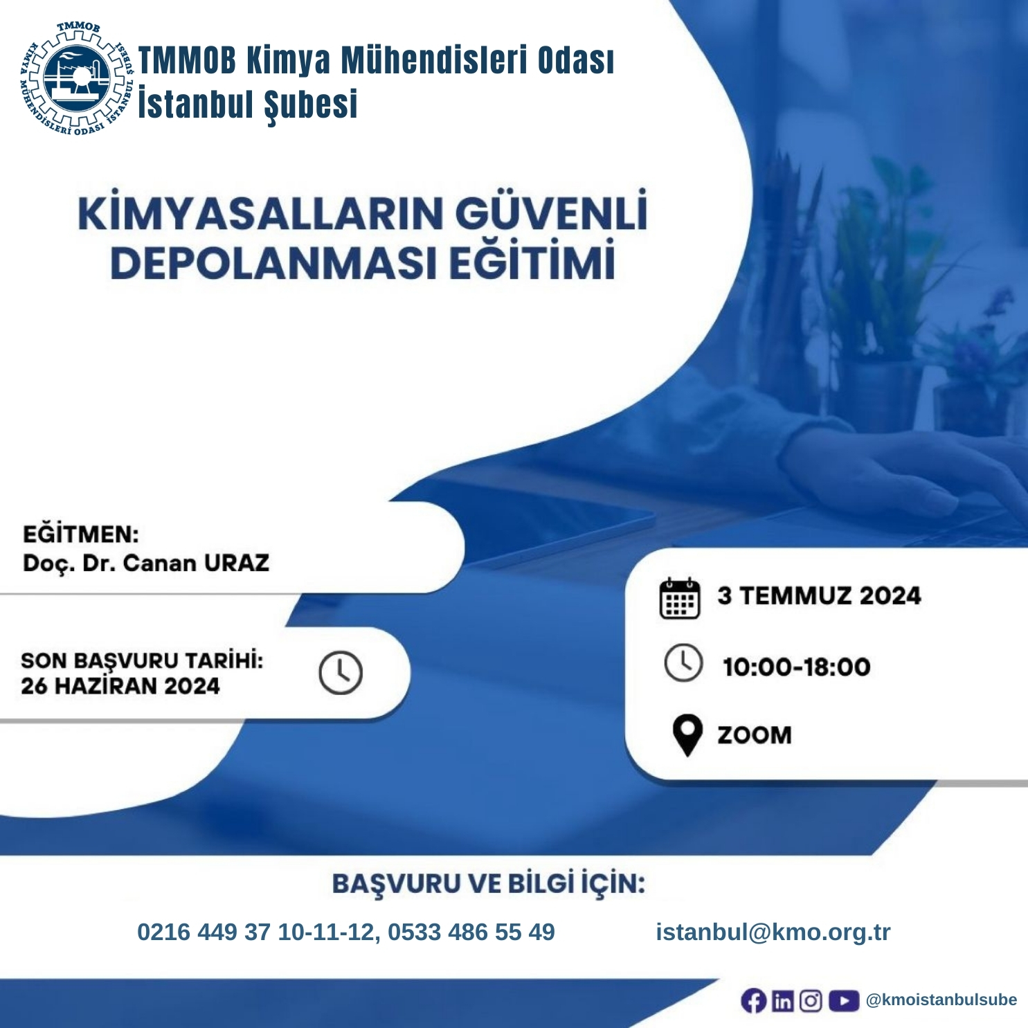 Odamız tarafından 3 Temmuz 2024 tarihinde Kimyasalların Güvenli Depolanması Eğitimi online olarak zoom uygulaması üzerinden düzenlenecektir.
