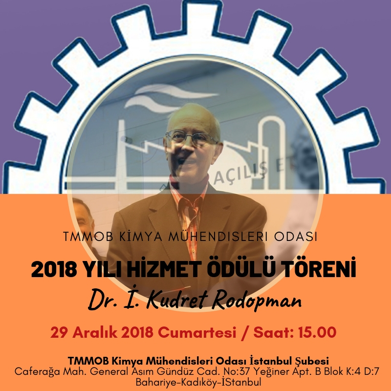 KMO 2018 yılı hizmet ödülünü kazanan Şubemiz 2625 sicil.no`lu üyesi Dr. İ. Kudret Rodopman`ın ödül takdim töreni 29 Aralık Cumartesi günü Şubemizde gerçekleştirilecektir.