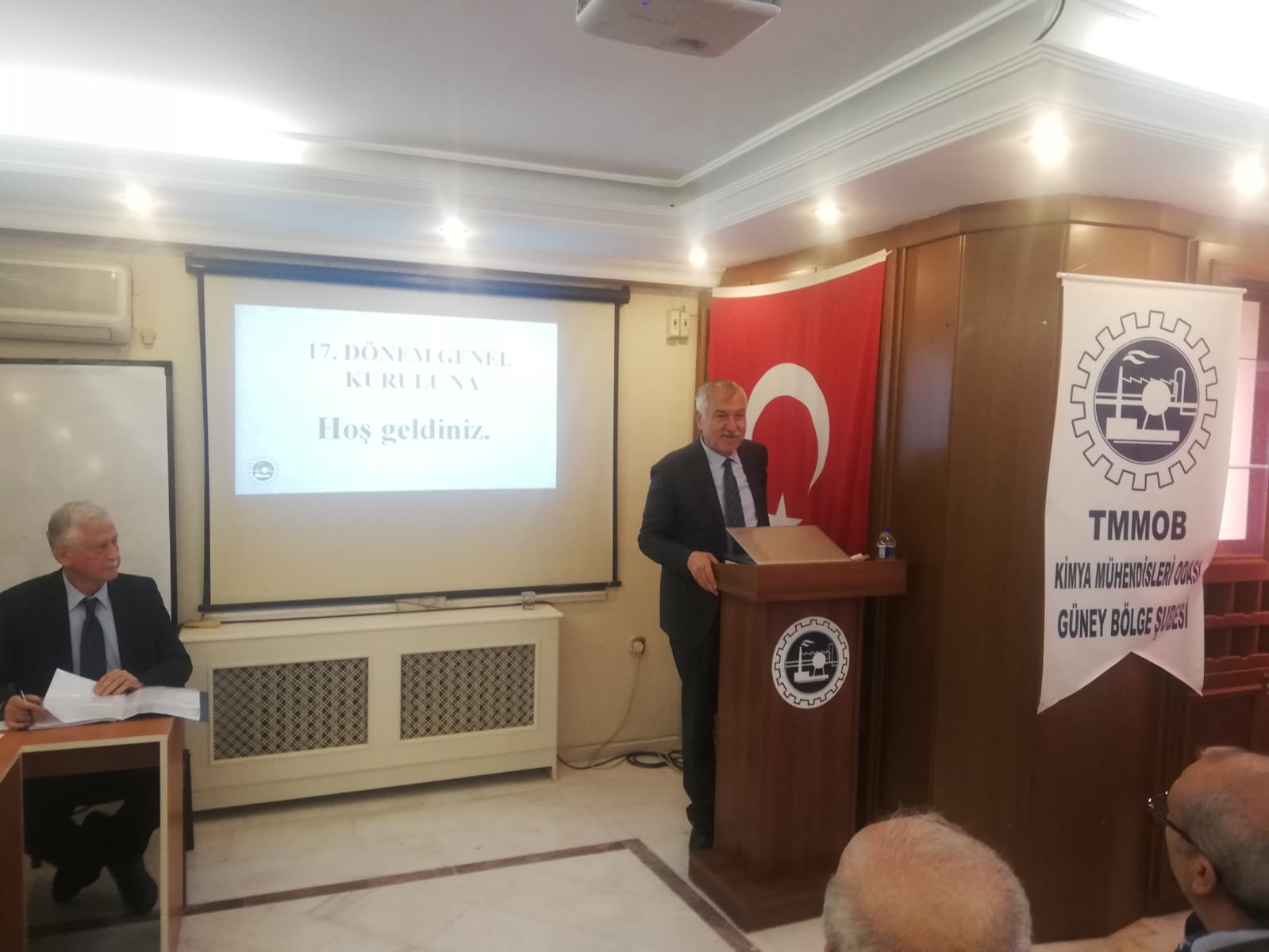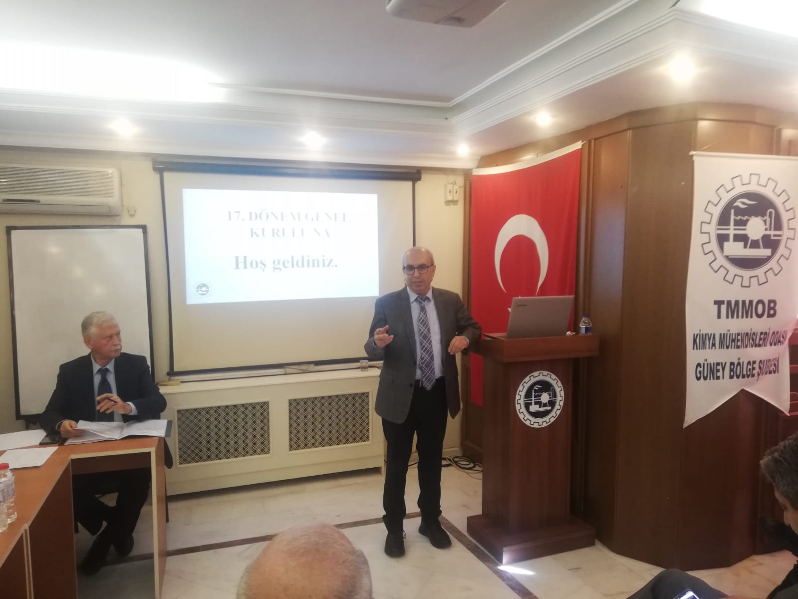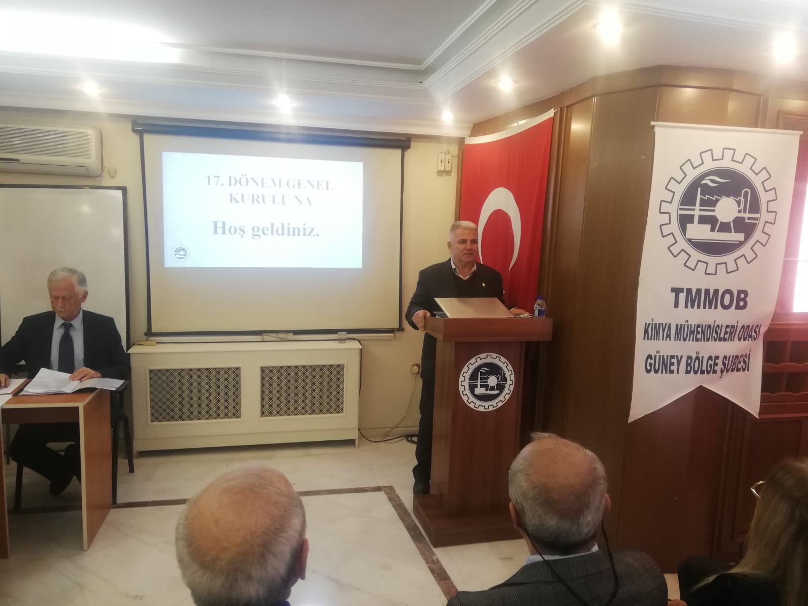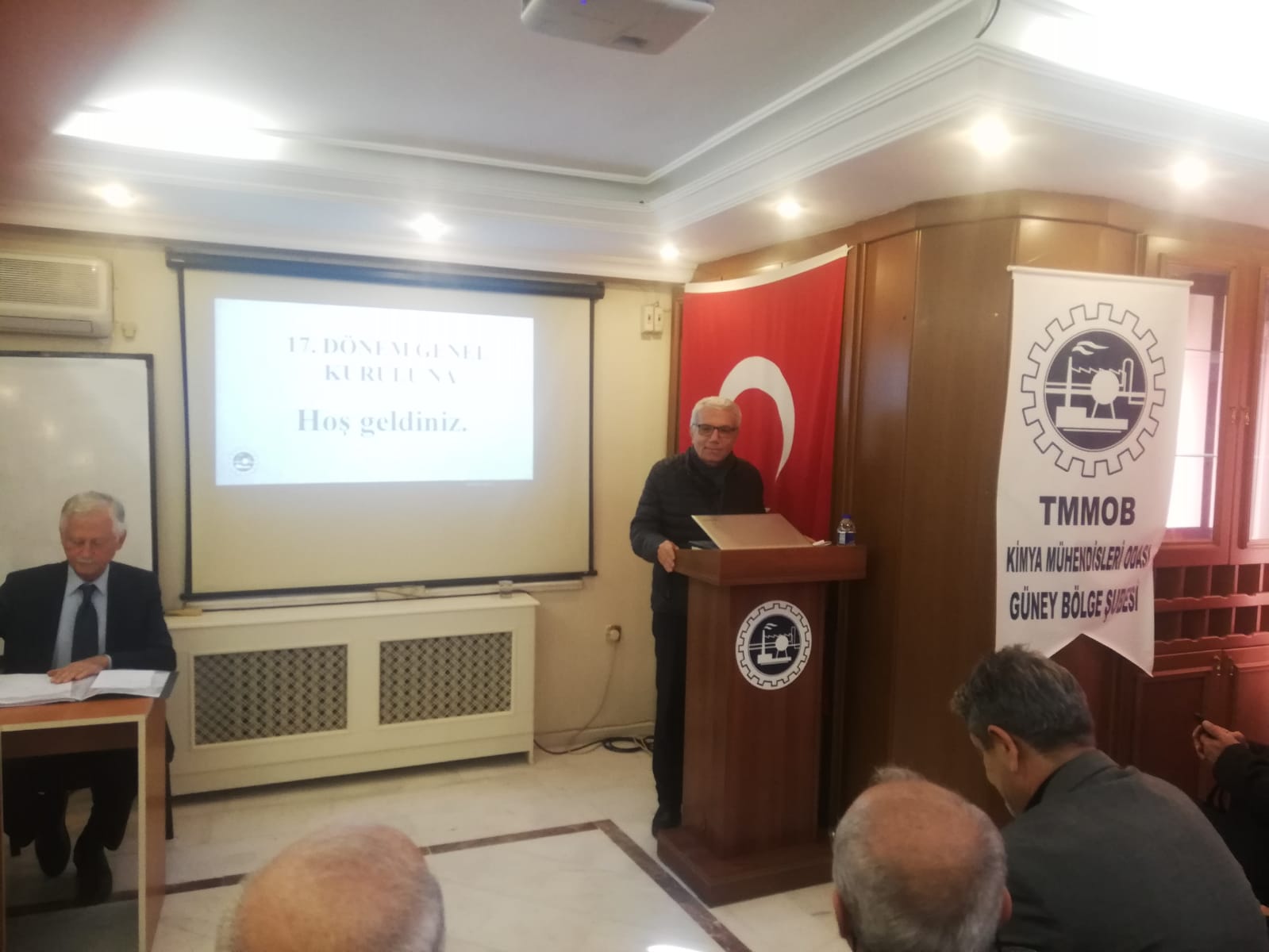 27.01.2024 Cumartesi günü yapılan 17. Olağan Genel Kurulumuza; Adana Büyükşehir Belediye Başkanı Zeydan KARALAR, KMO Merkez Yönetim Kurulu Üyesi Mehmet Cevat BOZ, TMMOB Adana İKK Sekreteri Ahmet UNCU, TMMOBye bağlı odaların Adana Şubelerinden; EMO adına Mehmet MAK, GIDAMO adına Şehmus ALPARSLAN, İMO adına Hasan AKSUNGUR, JMO adına Mehmet TATAR, CHP Adana İl Yönetimi adına Münir MERSİNLİOĞLU ve üyelerimiz katılım sağladılar. Tüm konuklarımızın kısa birer konuşmasının ardından genel kurulumuz gündemine göre tamamlandı.