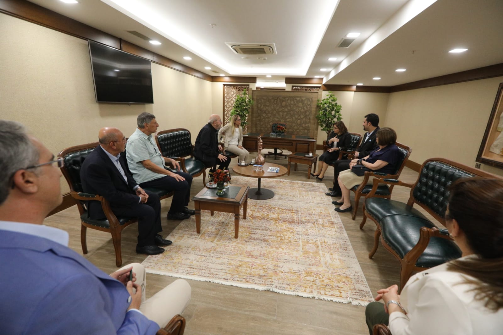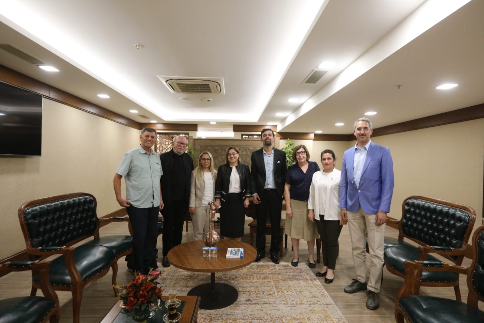 Toplantımızın ardından; KMO Yönetim Kurulu Başkanı Engin ÇÖRÜŞLÜ, KMO Yönetim Kurulu Üyesi Mehmet Şeref KIRAN, Güney Şube Başkanı Çiğdem EROĞLU ve Gaziantep İl Temsilcisi Emrullah BİTİCİ, Güney Bölge Şubesi Üyemiz ve Gaziantep Büyükşehir Belediye Başkanı Fatma ŞAHİNi makamında ziyaret etti. Görüşmede Sn. Fatma ŞAHİN, elinden gelen her konuda odamıza destek olacağını belirtti.