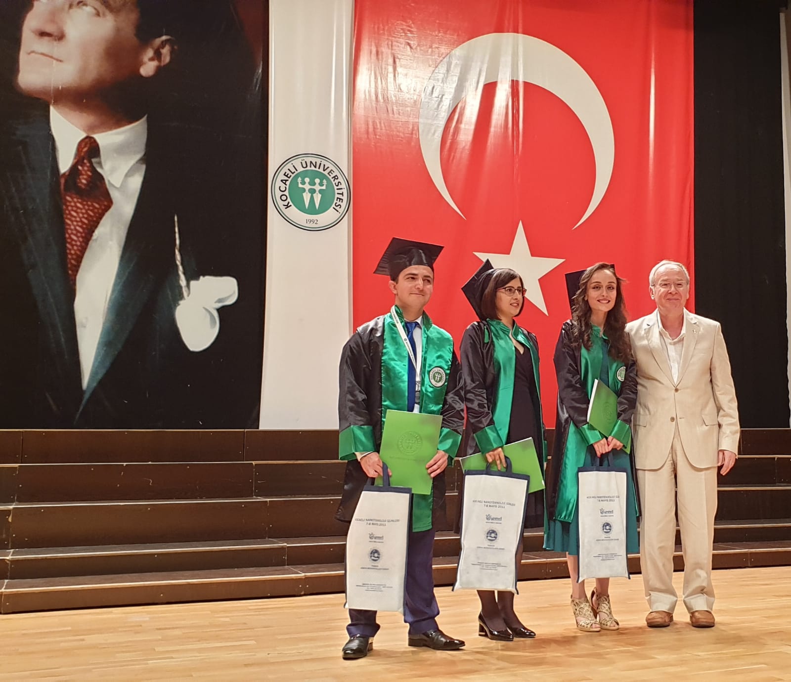 KOÜ KİMYA MÜHENDİSLİĞİ BÖLÜMÜ MEZUNİYET TÖRENINDE, DERECEYE GİREN MEZUNLAR; Soldan sağa, 3. Emre ÇELİK , 2. Damla Sıla DEMİR, 1. Tuğba CAN ve KMO KOCAELİ ŞUBESİ YÖNETİM KURULU BAŞKANI M.Halim KARABEKİR