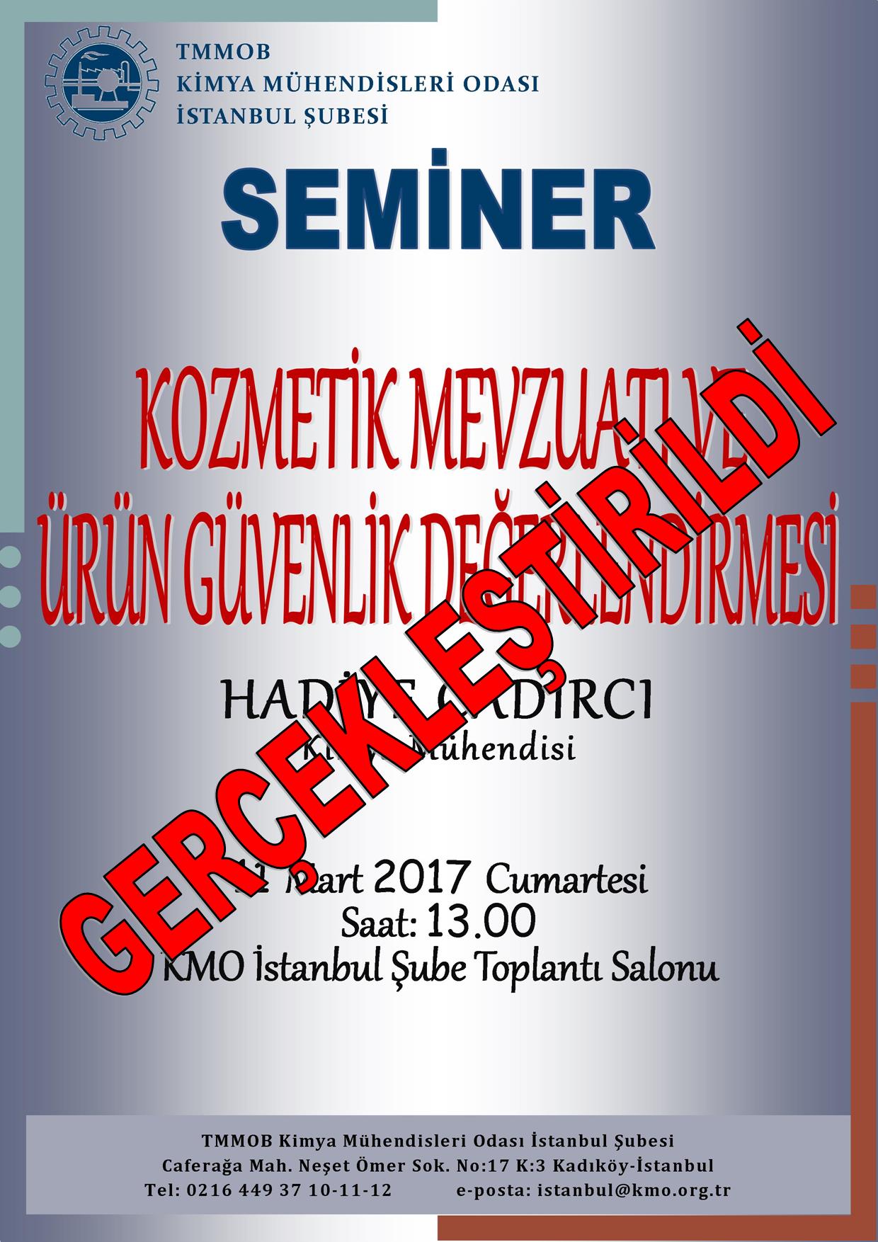 11 Mart 2017 Cumartesi günü Şubemiz eğitim salonunda, "Kozmetik Mevzuatı ve Ürün Güvenlik Değerlendirmesi" semineri verilmiştir.
