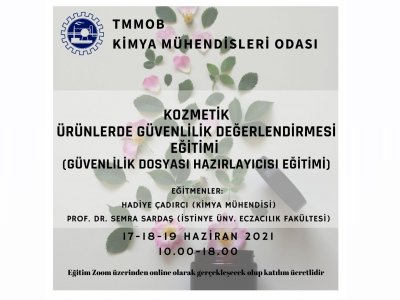 17-18-19 Haziran 2021 tarihlerinde KOZMETİK ÜRÜNLERDE GÜVENLİLİK DEĞERLENDİRMESİ EĞİTİMİ (Güvenlilik Dosyası Hazırlayıcısı Eğitimi) online olarak zoom programı üzerinden düzenlenecektir. Eğitim ile ilgili detaylı bilgi aşağıda yer almakta olup eğitim başvuru formunu ekte dosyalar kısmında bulabilirsiniz.