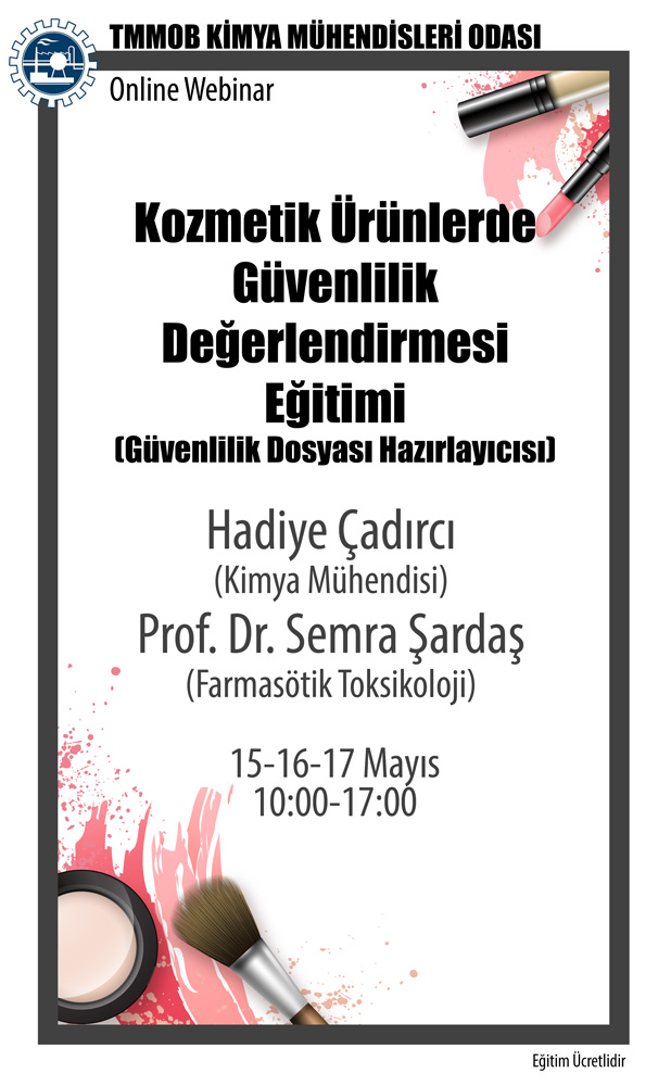 EĞİTİM İÇERİĞİ | Bu eğitim, katılımcılara Sağlık Bakanlığı`nın yayınlamış olduğu Kozmetik Yönetmeliği ve ekleri ile güvenlilik değerlendirmesine ilişkin kılavuzlar çerçevesinde, kozmetik ürünlerde mevzuata uygun olarak güvenlilik değerlendirme raporunun hazırlanması ve uygulamaları için gerekli olan temel bilgilerin sunulmasını amaçlar. Eğitim kozmetik ürün güvenlik değerlendirme raporu kapsamı, içeriği ve onay süreçleri hakkında bilgilendirmeleri sağlar. Eğitim programı aşağıdaki konuları içermektedir; - Kozmetik Mevzuatı - Kozmetik Ürün Bildirimleri/Kozmetik Ürün Takip Sistemi - Kozmetik Ürün Üretim Koşulları (CMP) - Kozmetik Ürün Teknik Bilgi Dosyası - Kozmetik Ürün Güvenlilik Değerlendirmesi İçin Temel Toksikoloji Bilgisi - Kozmetik Ürün Maruziyet ve Güvenlilik Değerlendirmesi (Hesaplamalar, Raporlama, Gerekçelendirme ve Onay Süreçleri) - Güvenlilik Değerlendirme Çalışması / Örnek Olgu - Sınav |