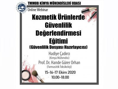 15-16-17 Ekim 2020 tarihlerinde KOZMETİK ÜRÜNLERDE GÜVENLİLİK DEĞERLENDİRMESİ EĞİTİMİ (Güvenlilik Dosyası Hazırlayıcısı Eğitimi) online olarak zoom programı üzerinden düzenlenecektir. Eğitim ile ilgili detaylı bilgi aşağıda yer almakta olup eğitim başvuru formunu ekte dosyalar kısmında bulabilirsiniz.