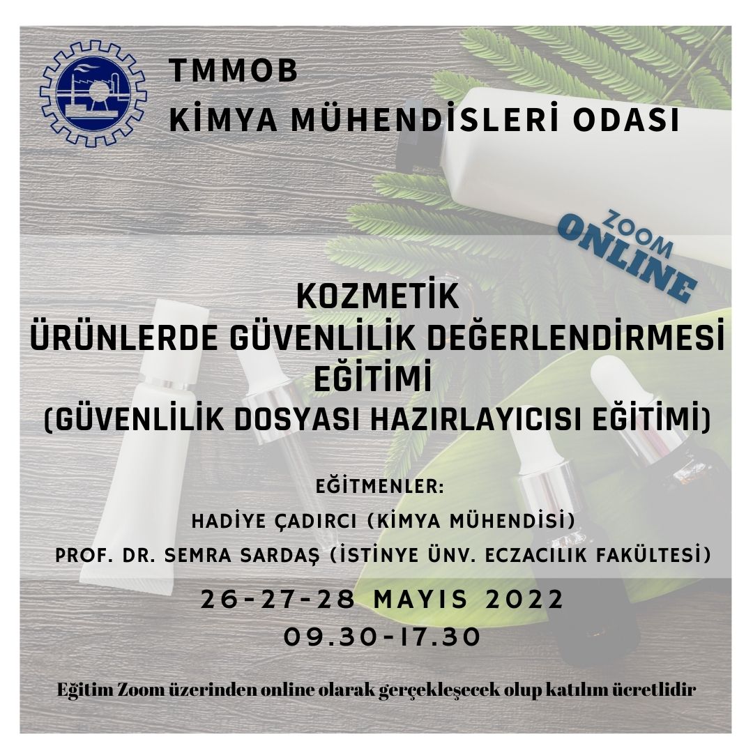 26-27-28 Mayıs 2022 tarihlerinde KOZMETİK ÜRÜNLERDE GÜVENLİLİK DEĞERLENDİRMESİ EĞİTİMİ (Güvenlilik Dosyası Hazırlayıcısı Eğitimi) online olarak zoom programı üzerinden düzenlenecektir. Eğitim ile ilgili detaylı bilgi aşağıda yer almakta olup eğitim başvuru formunu ekte bulabilirsiniz. Eğitime katılmak isteyenlerin, başvuru formunu doldurarak 23 Mayıs 2022 tarihine kadar istanbul@kmo.org.tr e-posta adresine göndermelerini rica ederiz.