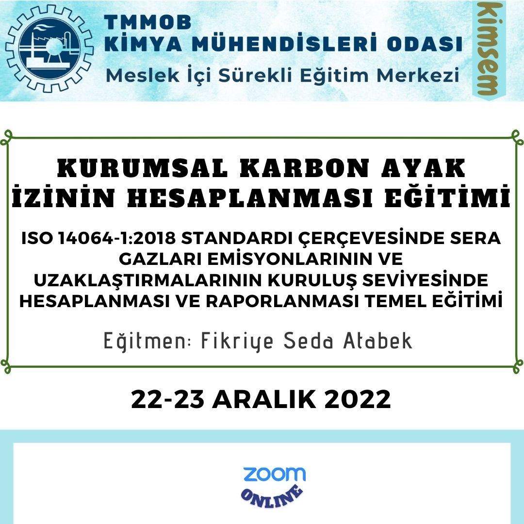 | EĞİTİMİN ADI | KURUMSAL KARBON AYAK İZİNİN HESAPLANMASI (ISO 14064-1:2018 Standardı Çerçevesinde Sera Gazları Emisyonlarının ve Uzaklaştırmalarının Kuruluş Seviyesinde Hesaplanması ve Raporlanması Temel Eğitimi) |