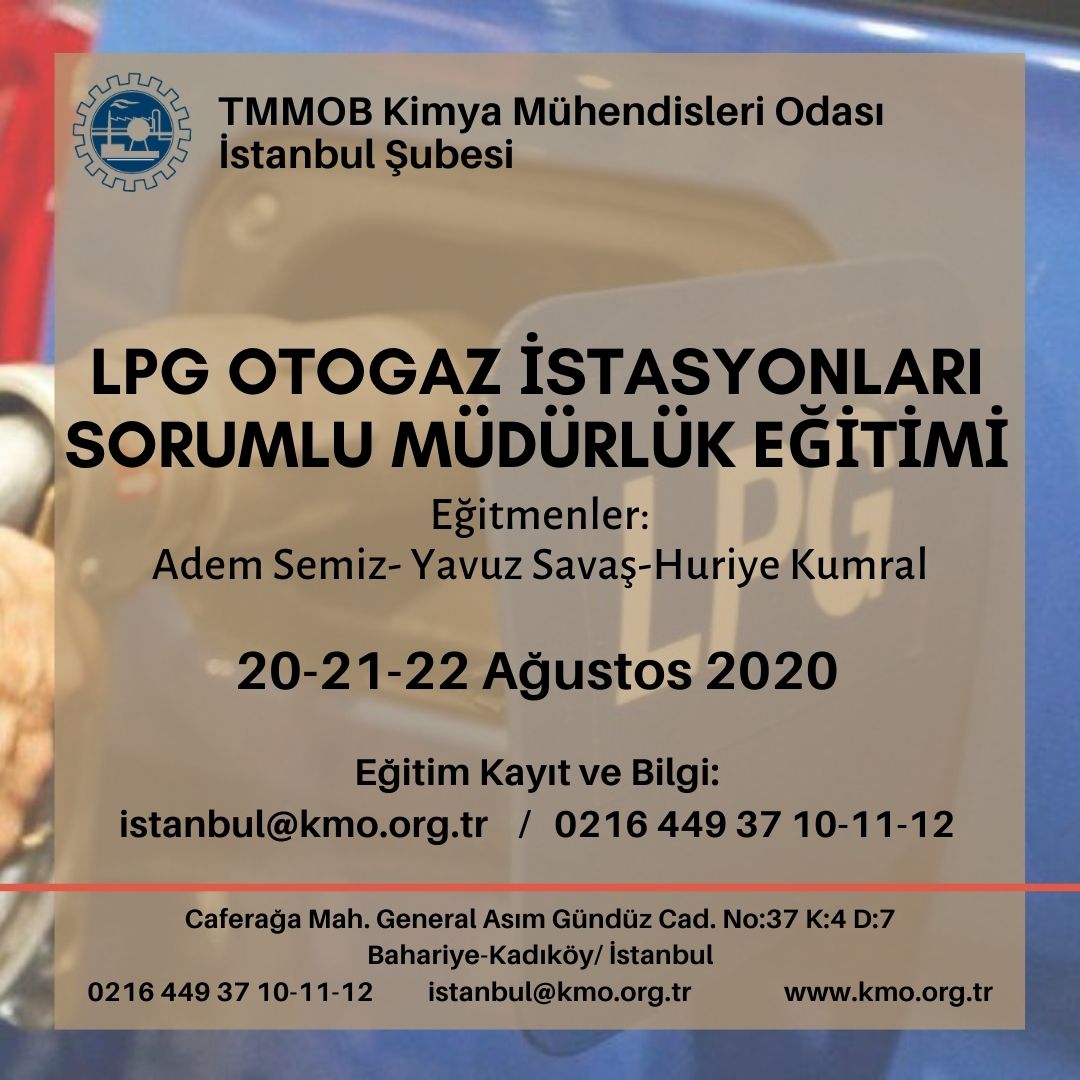 20-21-22 Ağustos 2020 tarihlerinde LPG Otogaz İstasyonu Sorumlu Müdürlük Eğitimi düzenlenecektir. Eğitim ile ilgili detayı ve eğitim başvuru formunu aşağıda bulabilirsiniz. Eğitime katılmak isteyenlerin, ekte bulunan başvuru formunu doldurarak istanbul@kmo.org.tr adresine göndermeleri gerekmektedir.