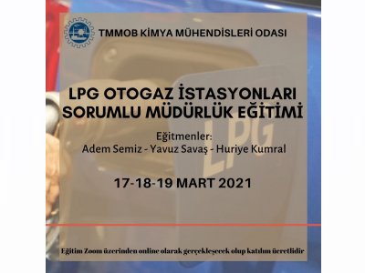 17-18-19 Mart 2021 tarihlerinde LPG Otogaz İstasyonu Sorumlu Müdürlük Eğitimi zoom programı üzerinden online olarak düzenlenecektir. Eğitim ile ilgili detayı ve eğitim başvuru formunu aşağıda bulabilirsiniz.