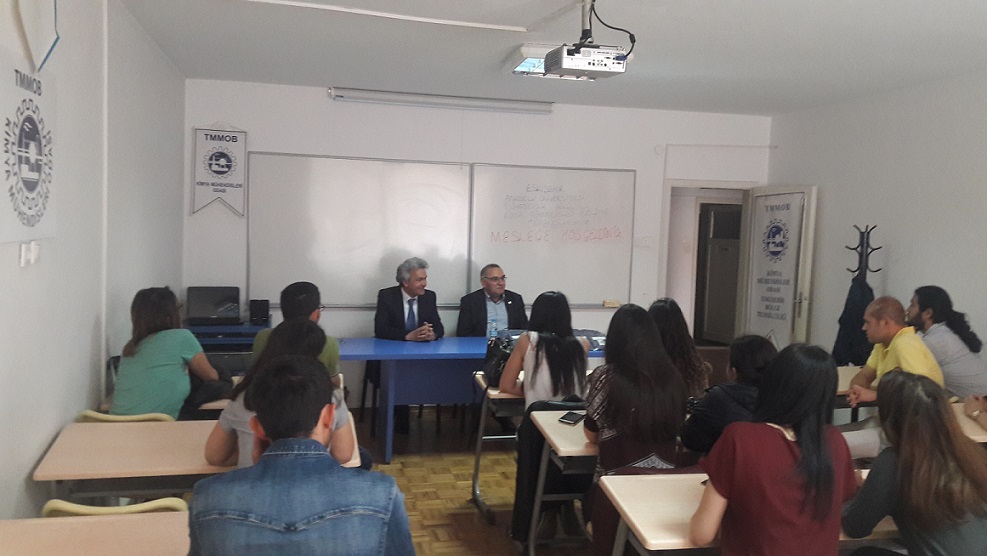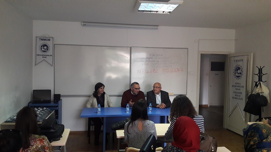 Eskişehir Anadolu ve Osmangazi Üniversiteleri Kimya Mühendisliği Bölümünden 2017 yılı Mezunlarımıza "MESLEĞE HOŞGELDİNİZ" denildi. Anadolu Üniversitesi Mühendislik Fakültesi Kimya Mühendisliği Bölüm Başkanı Prof. Dr. Süleyman KAYTAKOĞLU , Osmangazi Üniversitesi Mühendislik- Mimarlık Fakültesi Kimya Mühendisliği Bölüm Başkanı Prof. Dr. Neşe ÖZTÜRK ve Osmangazi Üniversitesi Danışma Kurulu üyemiz Kimya Mühendisi Hikmet ŞİMŞİRELin Katılımıyla Odamızda toplantı gerçekleşmiştir. Etkinlik sonunda meslektaşlarımıza çeşitli hediyeler verildi ve oda rozetleri takıldı. TMMOB Kimya Mühendisleri Odası Eskişehir Bölge Temsilciliği Başkanı Kenan ÇALIŞIR etkinlikte yaptığı konuşmada;