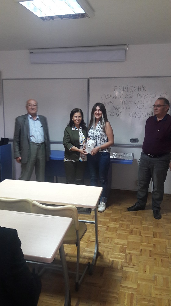 Eskişehir Osmangazi Üniversitesi Kimya Mühendisliği Bölümünden 2018 yılı Mezunlarımıza "MESLEĞE HOŞGELDİNİZ" denildi. Osmangazi Üniversitesi Mühendislik- Mimarlık Fakültesi Kimya Mühendisliği Bölüm Başkanı Prof. Dr. Neşe ÖZTÜRK ve Osmangazi Üniversitesi Danışma Kurulu üyemiz Kimya Mühendisi Hikmet ŞİMŞİRELin Katılımıyla Odamızda toplantı gerçekleşmiştir.