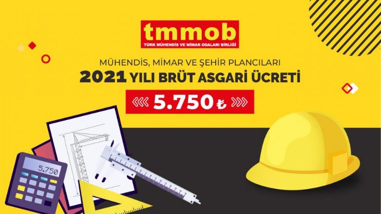 6235 Sayılı Türk Mühendis ve Mimar Odaları Birliği (TMMOB) Kanunu hükümlerine dayanarak, TMMOB Ana Yönetmeliğinde yer alan "Birliğin ve Bağlı Odaların Amaçları" maddesi uyarınca her yıl TMMOB Yönetim Kurulu tarafından açıklanan Mühendis, Mimar ve Şehir Plancıları Asgari Ücreti 2021 yılı için brüt 5750 TL olarak tespit edildi.