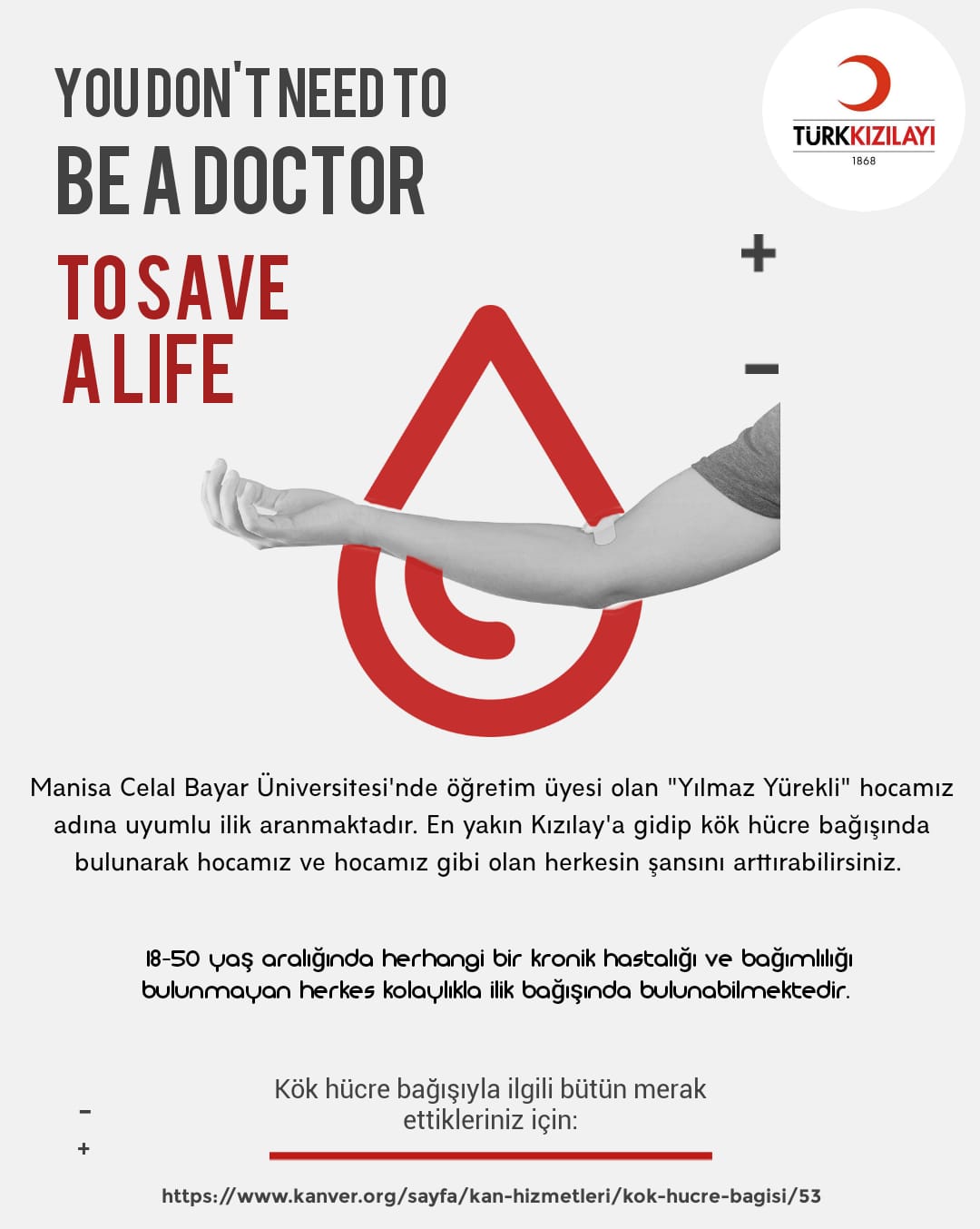 Odamız üyelerinden Celal Bayar Üniversitesi Biyomühendislik Bölüm Başkanı Doç. Dr. Yılmaz Yürekli için kök hücre bağış duyurusu afişte yer almaktadır.