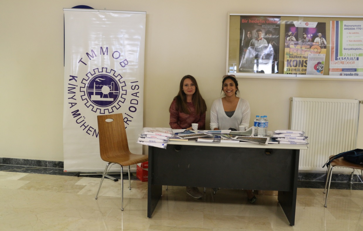 TMMOB Kimya Mühendisleri Odası Ankara Şubesi Öğrenci Komisyonumuz, geçtiğimiz hafta Atılım ve Hacettepe Üniversitelerinde açtıkları stantlarda odamızı ve komisyonlarını tanıtmış, kimya mühendisliği öğrencilerine odamız tarafından Tüpraş sponsorluğunda yaptırılan laboratuvar önlüklerini dağıtmıştır. Komisyonumuza bu değerli çalışmalarından dolayı teşekkür ederiz.