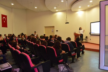 OMÜ Kimya Mühendisliği Fakültesi pembe salonda sektörde uzun yıllar deneyimi olan Uzm.Kim.Müh. Gamze UĞURLU YAVUZ Kimya Mühendisliği Bölüm Öğrencilerine İLAÇ SEKTÖRÜ başlıklı sunum gerçekleştirdi.