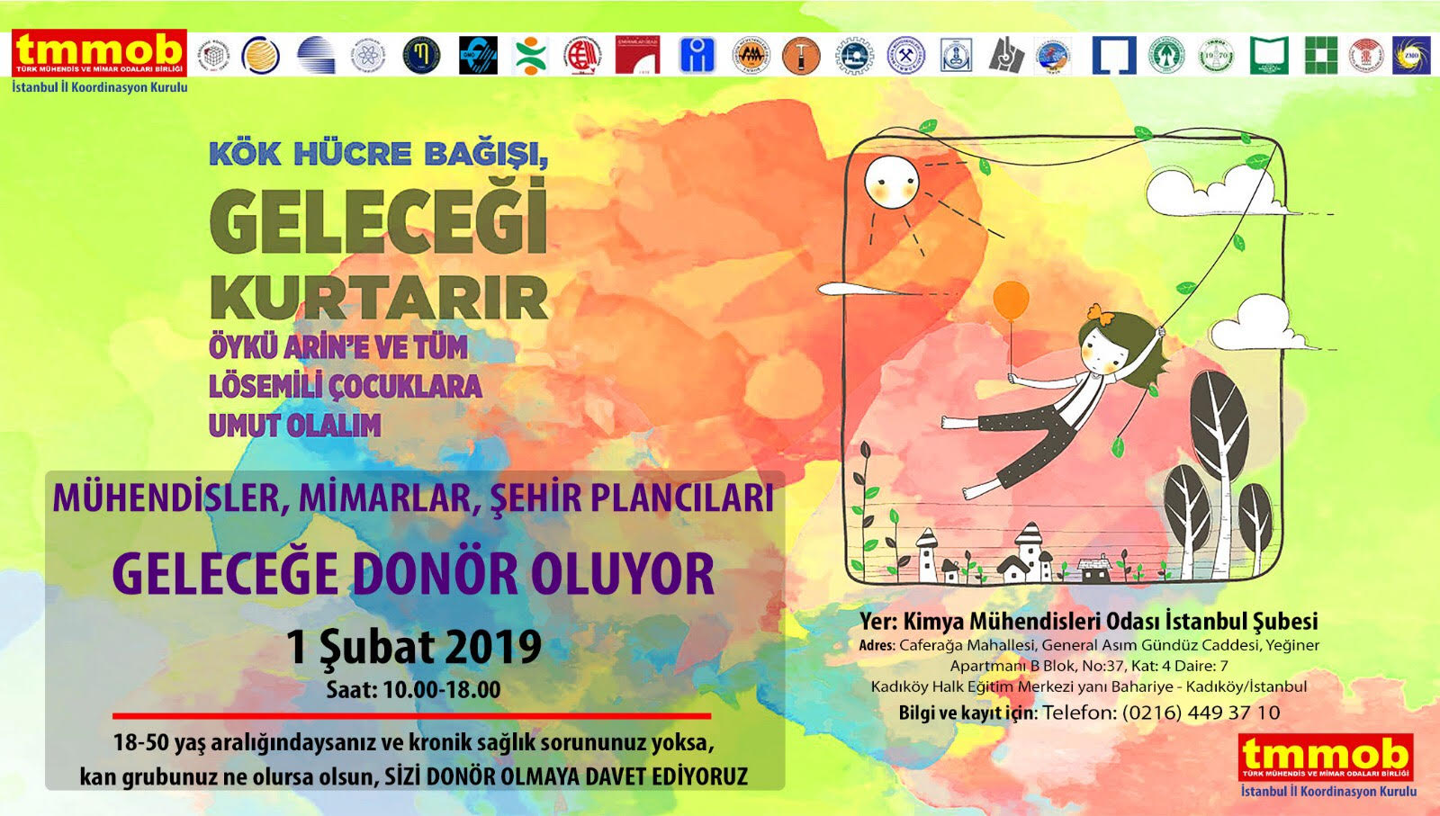 Tüm mühendis, mimar, şehir plancıları Öykü Arin ve lösemili çocuklara umut olmak için donör olmaya davet ediyoruz. ‪01 Şubat Cuma günü,10.00-18.00 saatleri arasında KMO İstanbul Şube binamıza gelerek kan verebilirsiniz.