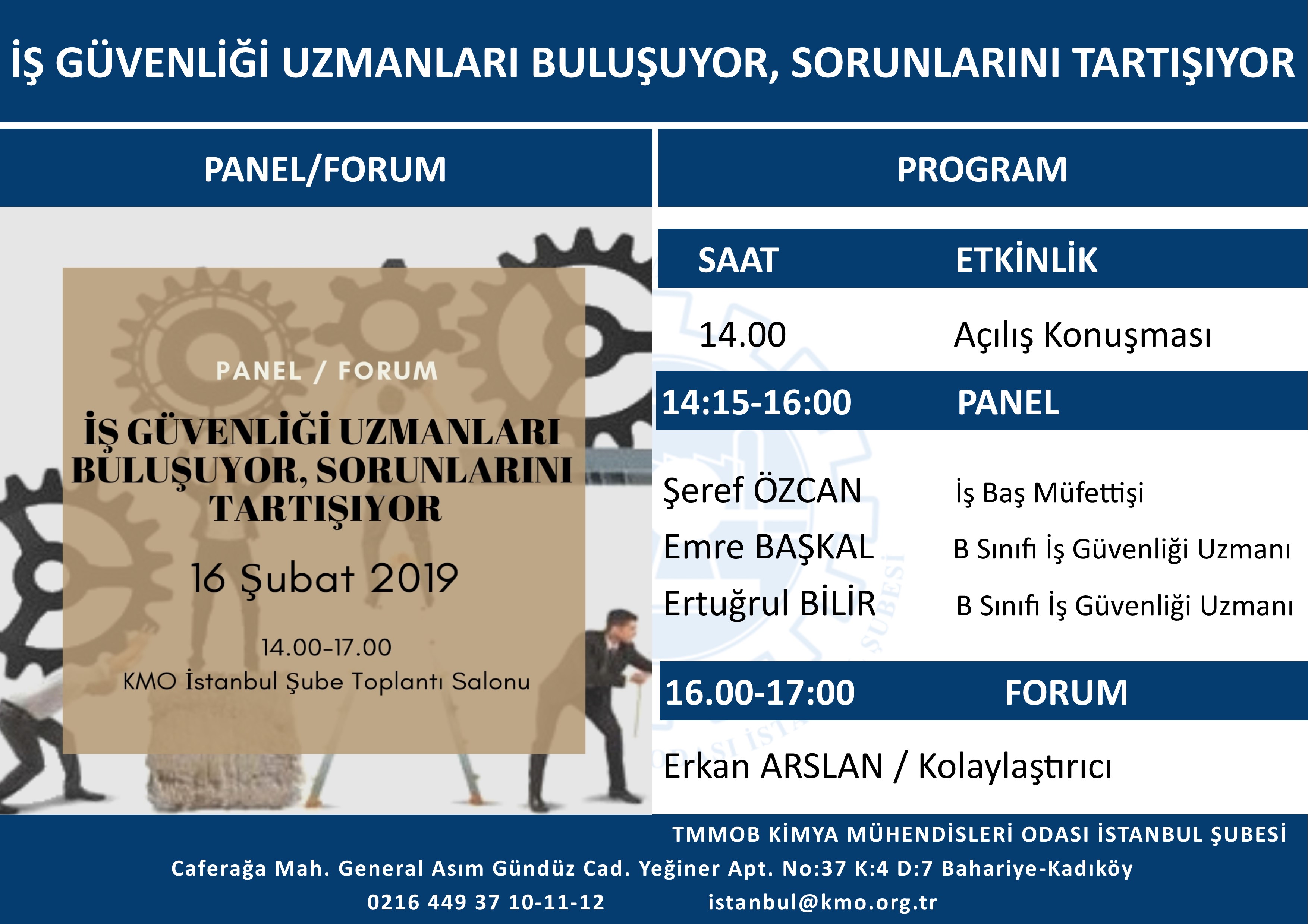 16 Şubat 2019 Cumartesi günü, İş Güvenliği Uzmanları Buluşuyor/Sorunlarını Tartışıyor Panel/Forumumuza tüm üyelerimiz davetlidir.