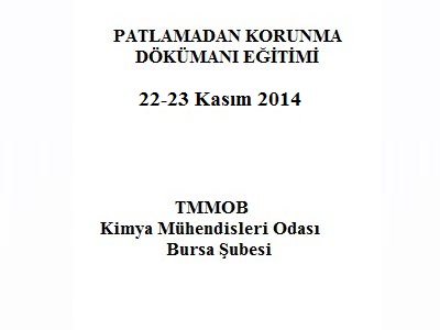 Patlayıcı ortam risklerinin tespit edilmesi, oluşabilecek patlamaların önlenmesi ve bunlardan korunmayı sağlamak amacıyla alınacak önlemler hakkında şubemiz tarafından 22-23 Kasım 2014 tarihlerinde eğitim düzenlenecektir. Eğitim detayları aşağıda paylaşılmaktadır.