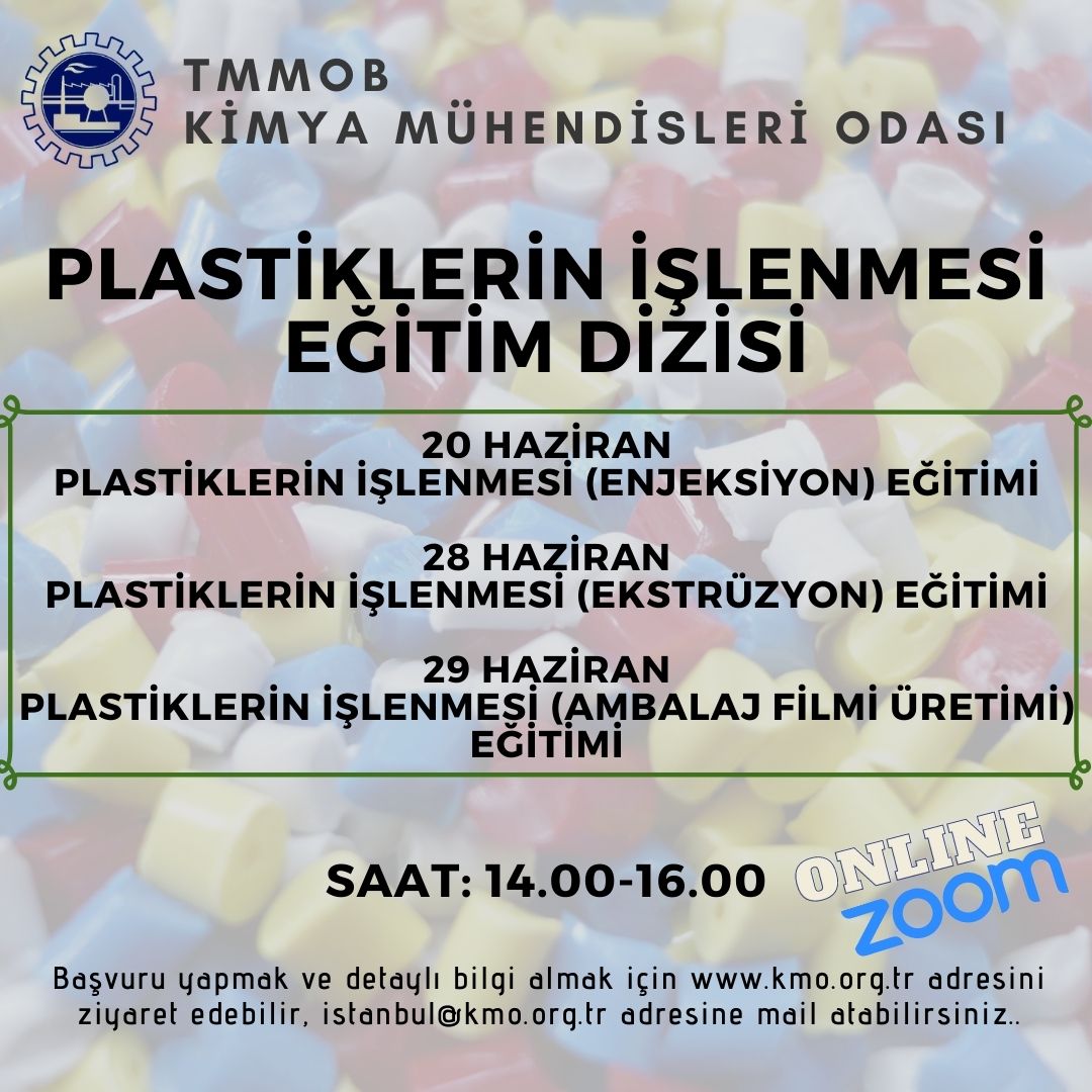 20, 28, 29 Haziran 2022 tarihlerinde PLASTİKLERİN İŞLENMESİ ONLİNE EĞİTİMLERİ zoom programı üzerinden düzenlenecektir. Eğitimler ile ilgili detaylı bilgi aşağıda yer almakta olup eğitim başvuru formunu ekte bulabilirsiniz. Eğitime katılmak isteyenlerin, başvuru formunu doldurarak 16 Haziran 2022 tarihine kadar istanbul@kmo.org.tr adresine e-posta adresine göndermelerini rica ederiz.