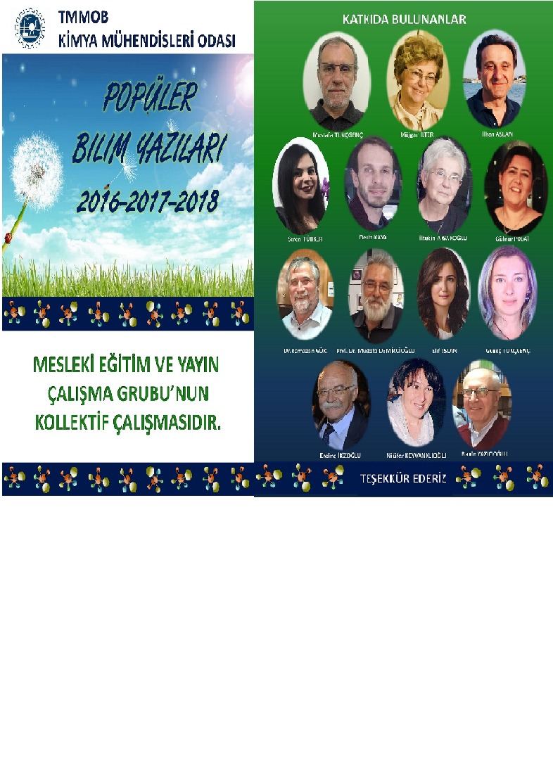 TMMOB Kimya Mühendisleri Odası Ege Bölge Şubesi olarak Mesleki Yayın Grubu`nun hazırladığı Mesleki Yayın Bülteninde yayınlanan makalelerin yer aldığı`Popüler Bilim Yazıları 2016-2017-2018` adlı kitabı yayınlanmıştır.